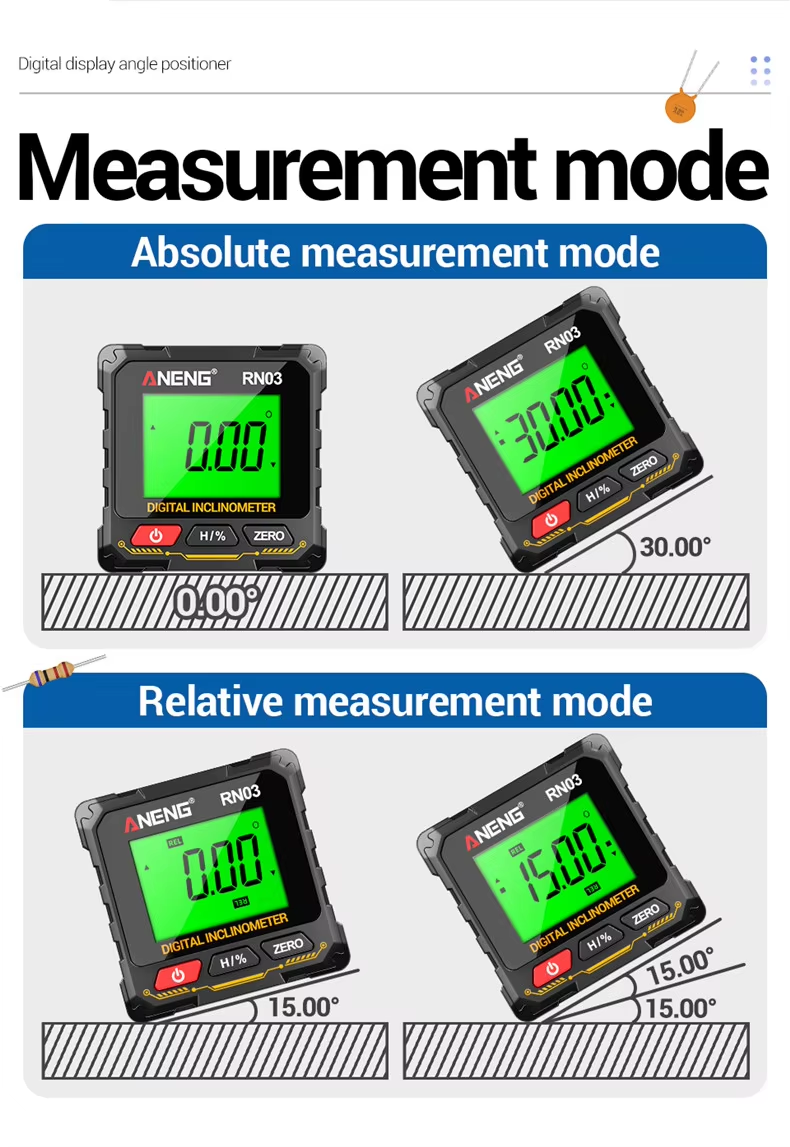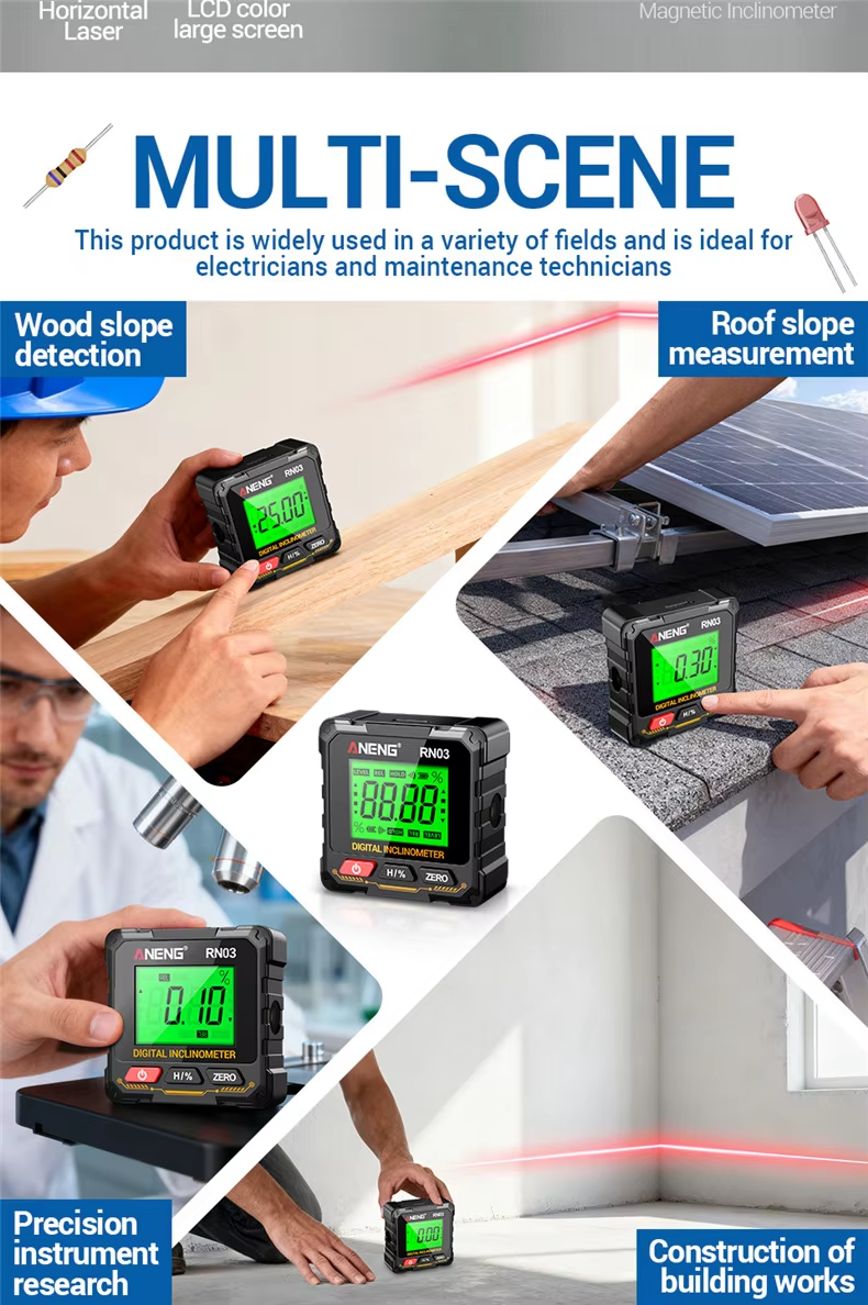 ANENG RN03 USB-C Charged Laser Digital Inclinometer Angle Gauge Finder Meter Level Box Protractor 0.3 Accuracy